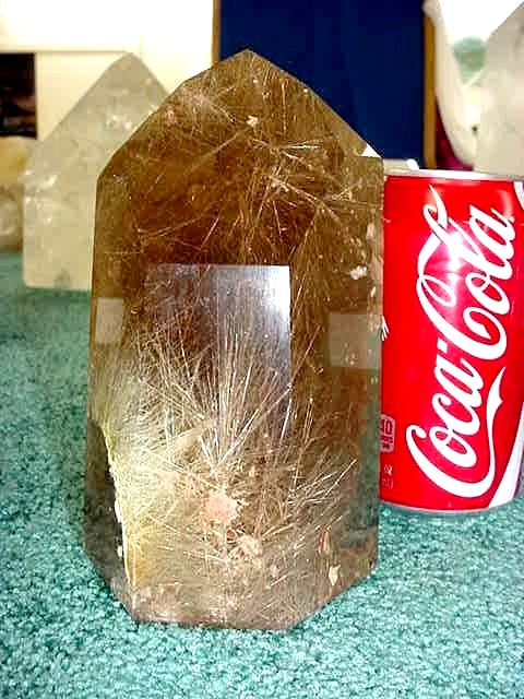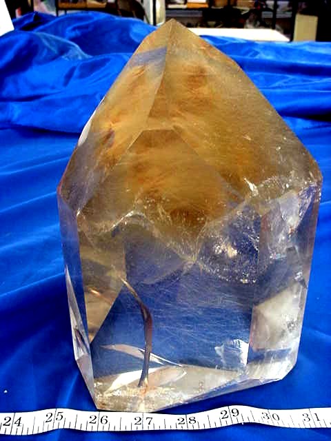 Point shows golden rutiles from bottom left tip to right tip