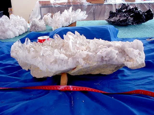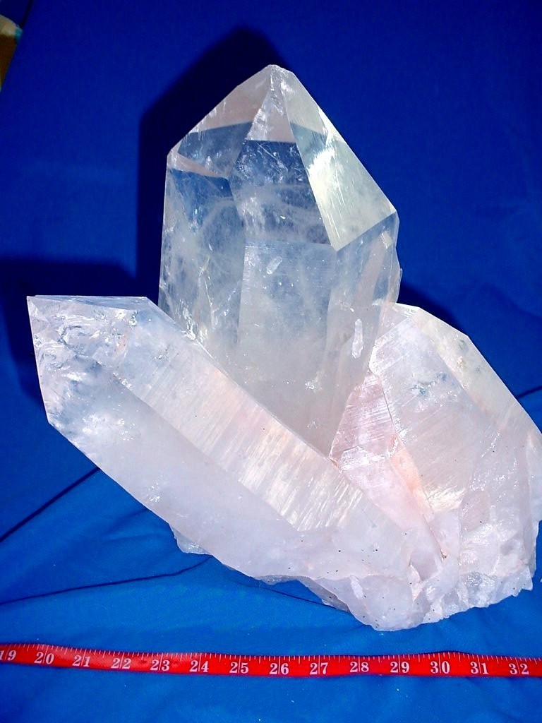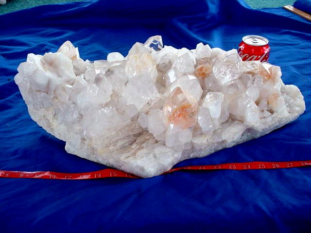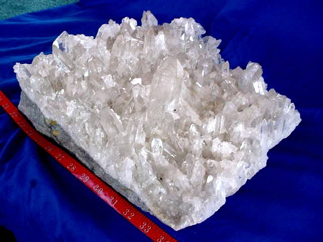quartz cluster has many extra large points, freestanding 2 different